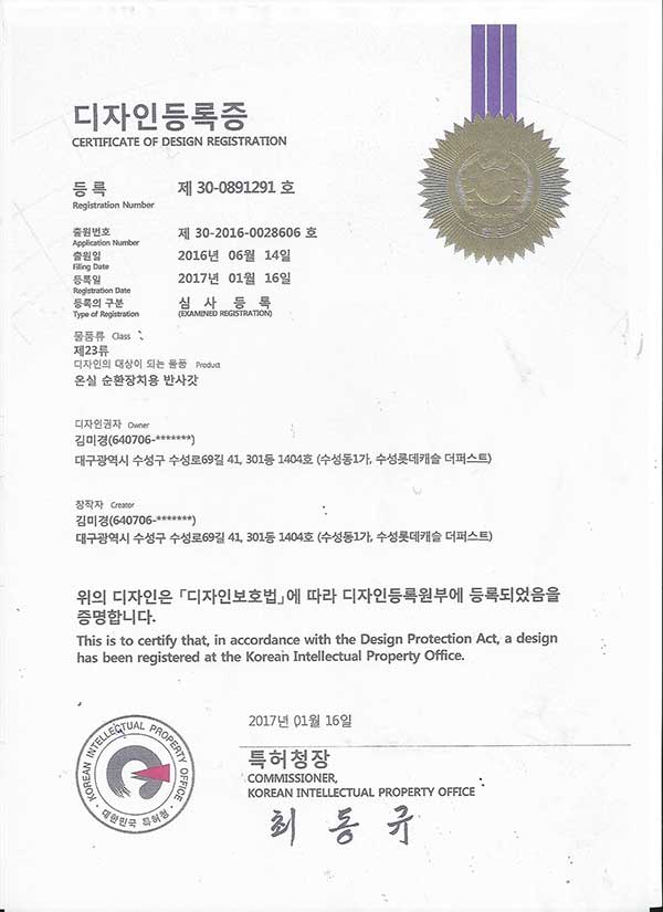 반사각 디자인등록증 > 특허증